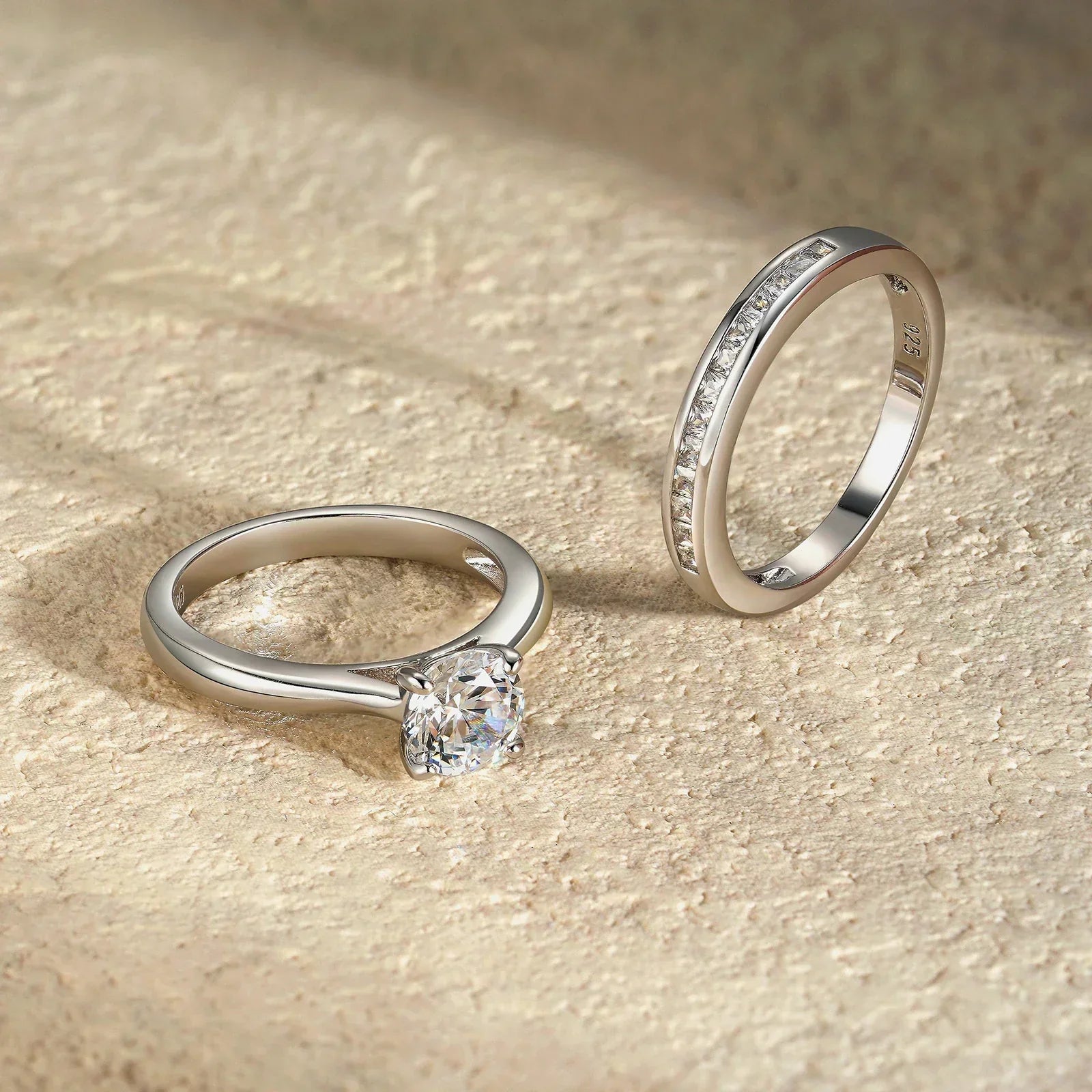 Dieses exquisite zweiteilige Ring-Set vereint Eleganz und Luxus in einem zeitlosen Design. Gefertigt aus hochwertigem 925er Sterling Silber mit goldener Beschichtung, bietet das Set einen Verlobungsring mit einem strahlenden, runden Zirkonia-Stein als Hauptakzent sowie einen passenden Ehering mit einer Reihe funkelnder Steine, die perfekt harmonieren. Der Tragekomfort und die edlen Details machen diese Ringe zur idealen Wahl für den besonderen Moment und darüber hinaus. Perfekt für Liebhaber klassischer und stilvoller Designs.